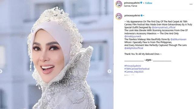 Terbaru, dia mencuri perhatian saat tampil di karpet merah Festival Film Cannes 2025. Gaun yang dikenakan Syahrini menunjukkan perpaduan antara kemegahan haute couture dengan sentuhan budaya khas Indonesia.